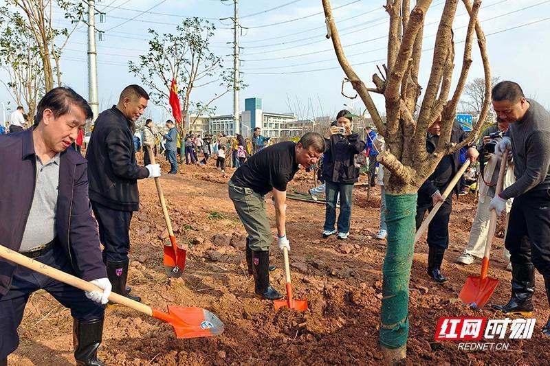 植树现场。植树活动现场,大家分工有序,密切配合,挥锹铲土、扶苗栽植、夯实土基、提水浇灌,经过一番辛勤劳作,一排排新栽种的树苗昂然挺立,焕发勃勃生机,为市区增添了一道靓丽的风景线。据悉,本次植树月在株洲各城区共组织了10场植树活动,市民可报名参与以下场次。当天的启动仪式是第一场;第二场是3月8日,地点在湖南汽车工程职业大欢迎各级各部门、企事业单位、社会团体、广大市民,积极参与今年的义务植树“三认”活动,为株洲市建设绿色、宜居、幸福株洲贡献力量。举报/反馈